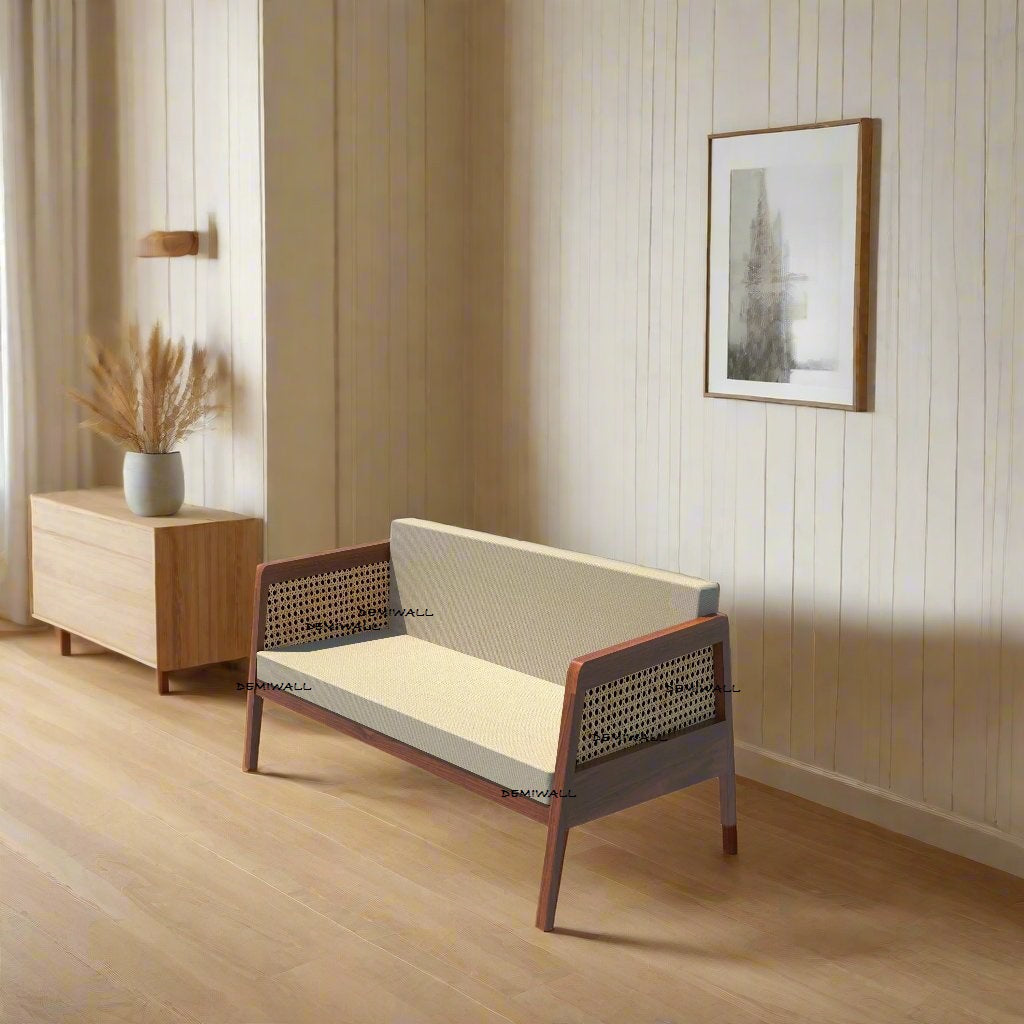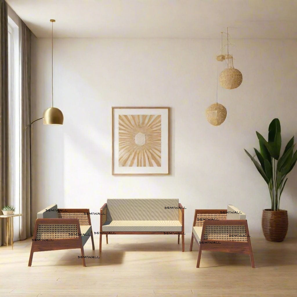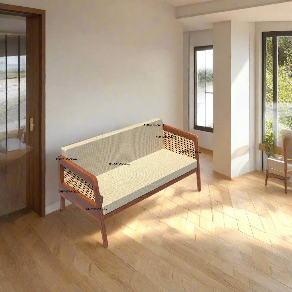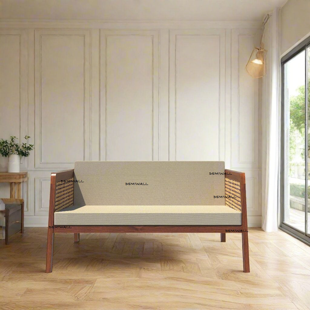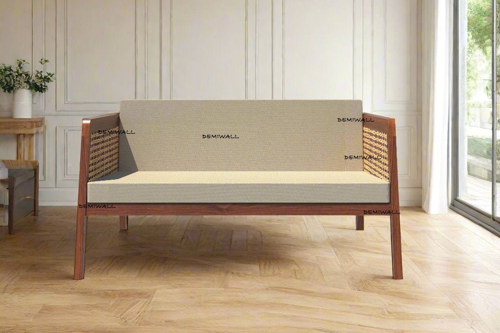 DEMIWALL Solid Wood Roman Sofa Set 3-Person Rattan Caning Sofa | Teak finish (Copy)