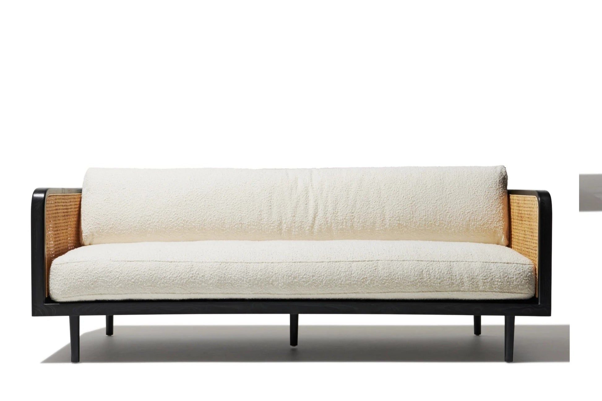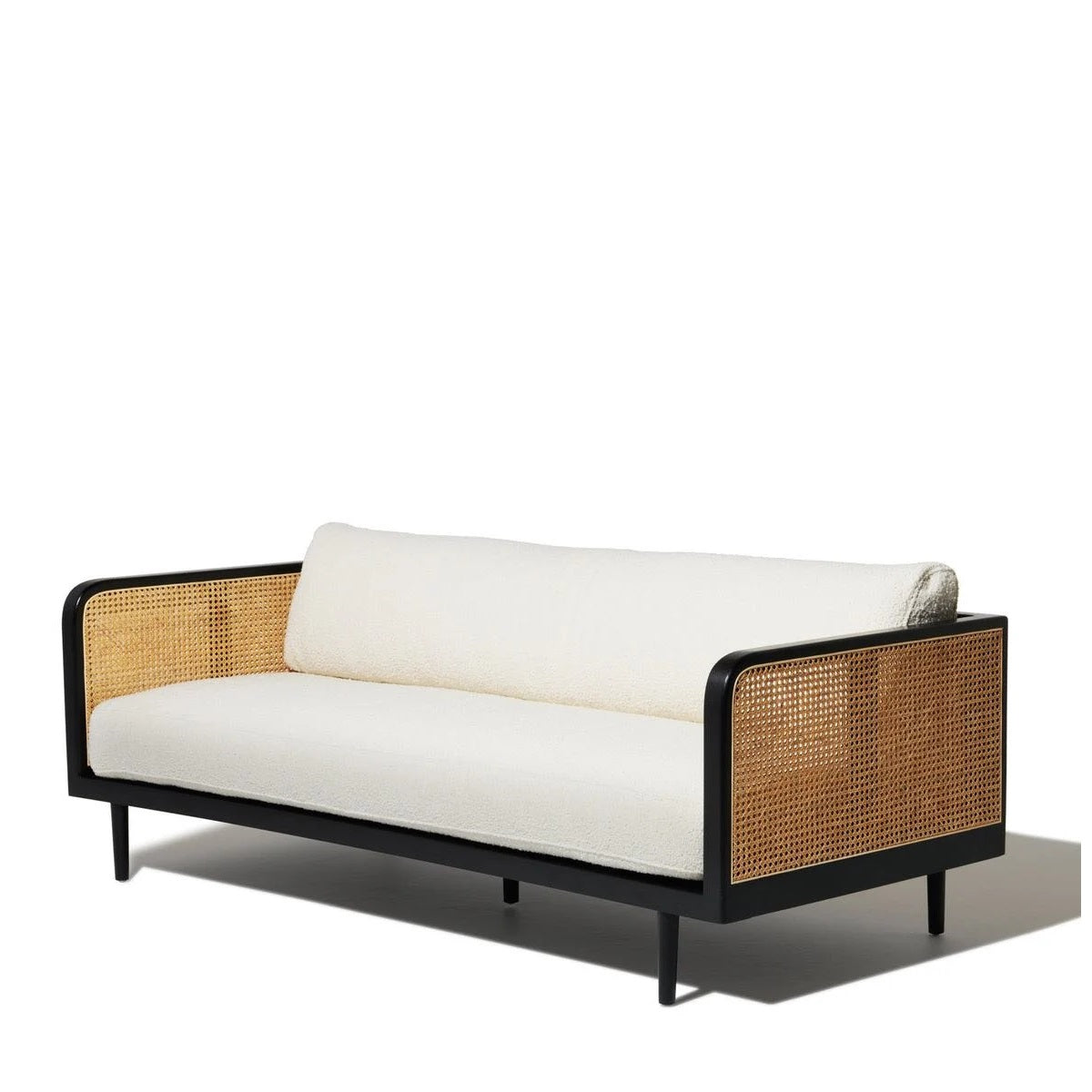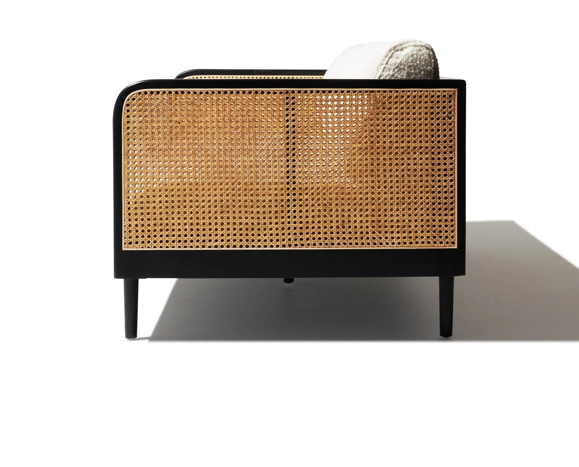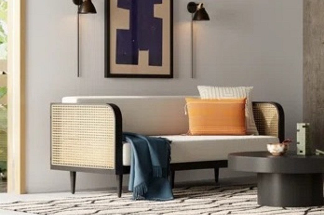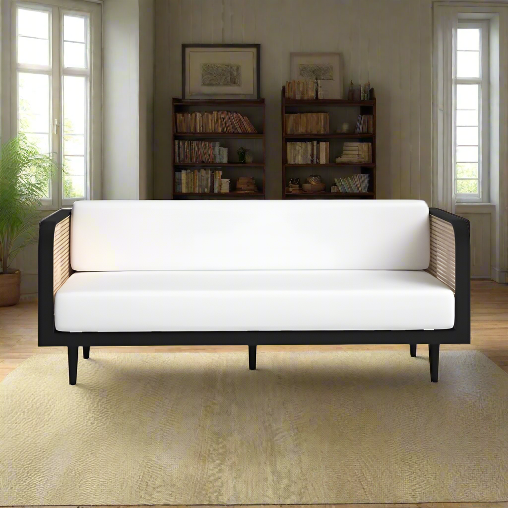 DEMIWALL Solid Wood Sofa Set 3-Person Rattan Caning Sofa Home Furniture Living Room|Three Seater Sofa Set Wooden|Sheesham Wood Rattan Caning Sofa for Office Furniture|Sofa with Cushions| Black Finish