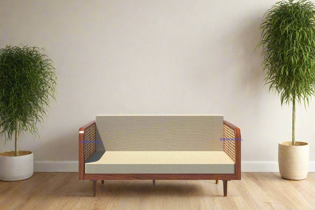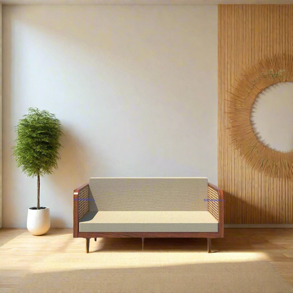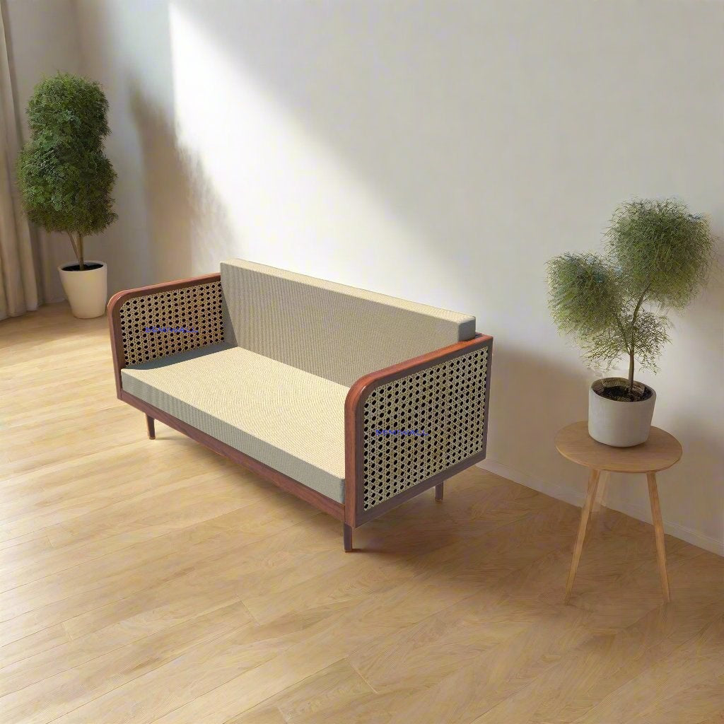DEMIWALL Solid Wood Sofa Set 3-Person Rattan Caning Sofa | Teak finish