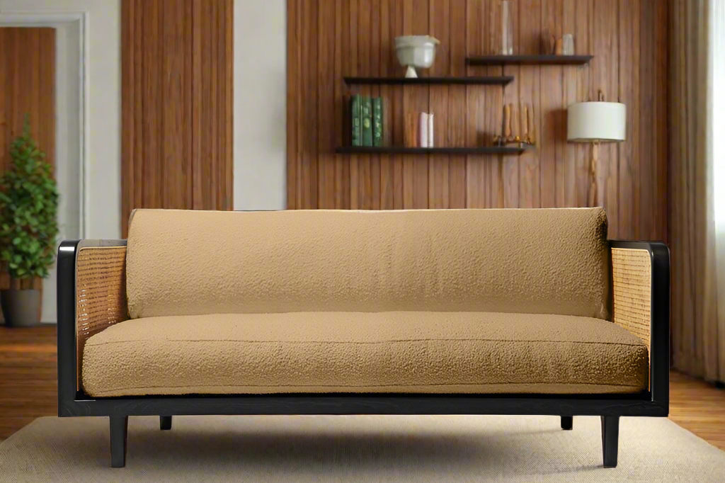 DEMIWALL Solid Wood Two Seater Sofa Set Rattan Caning Sofa Home Furniture Living Room || Black Finish