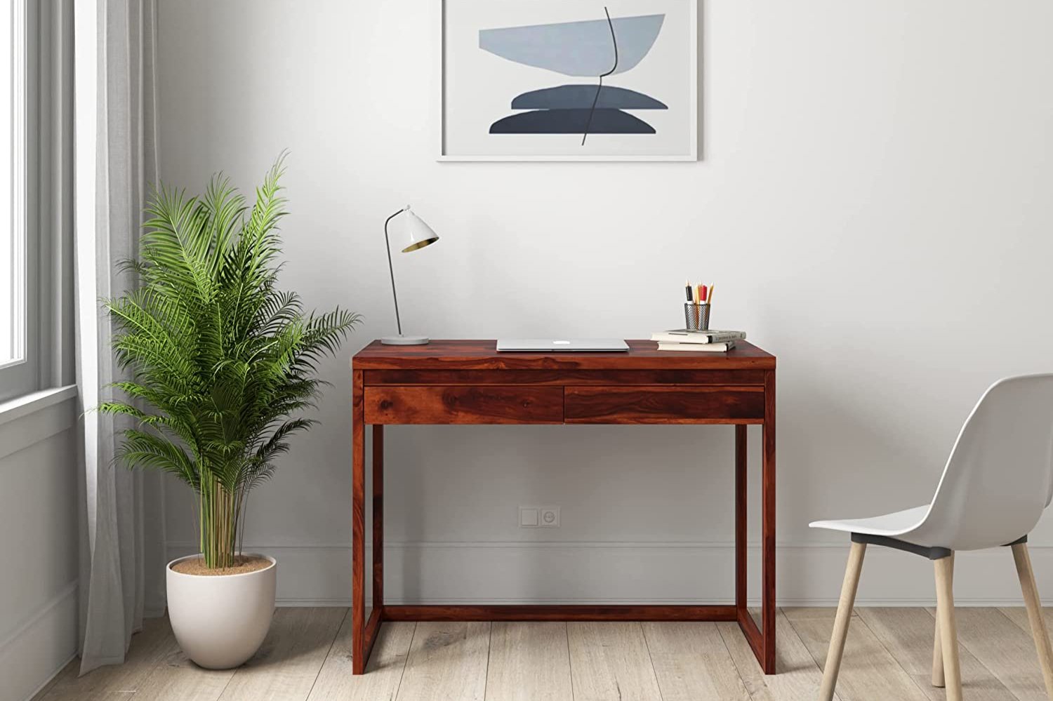 Diko Sheesham Wood 2 Drawers Desk In Natural Finish