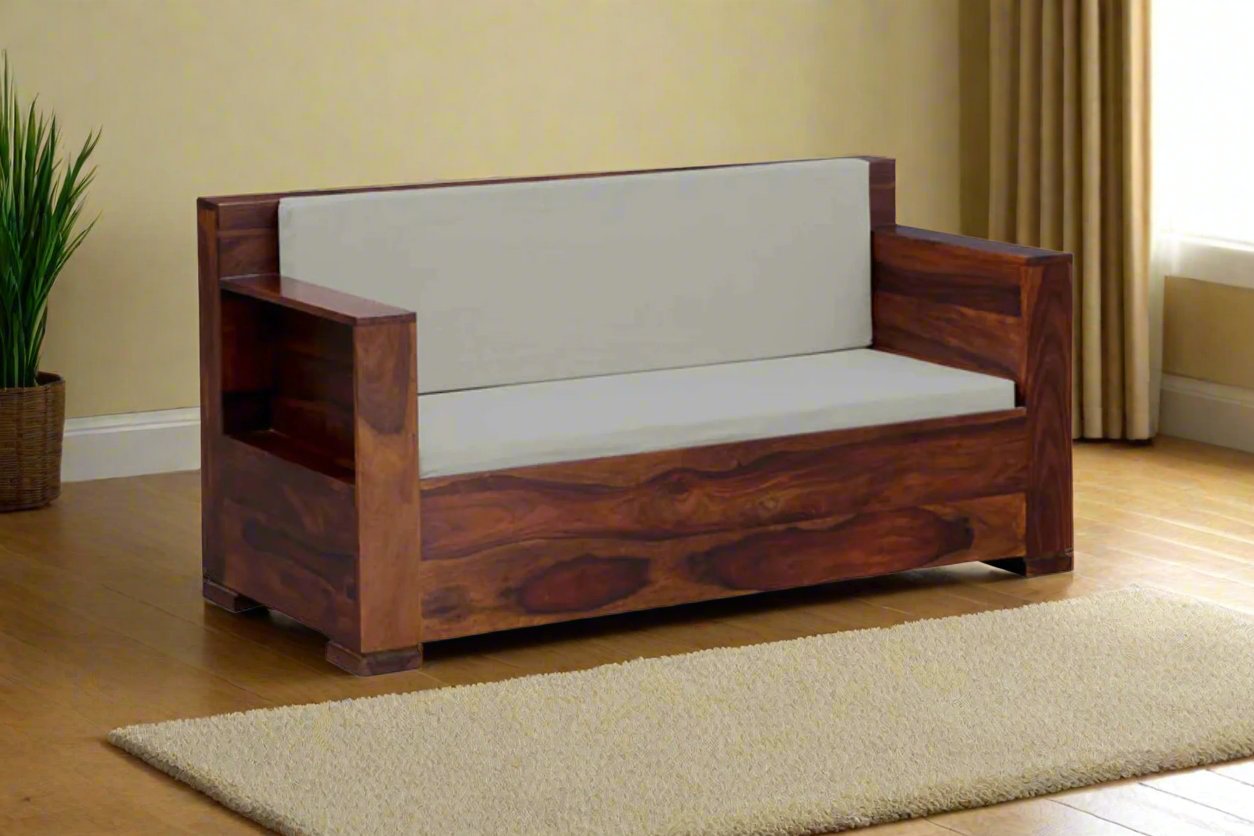Eli Solid Wood 3 Seater Sofa In Provincial Teak Finish For Living Room Furniture