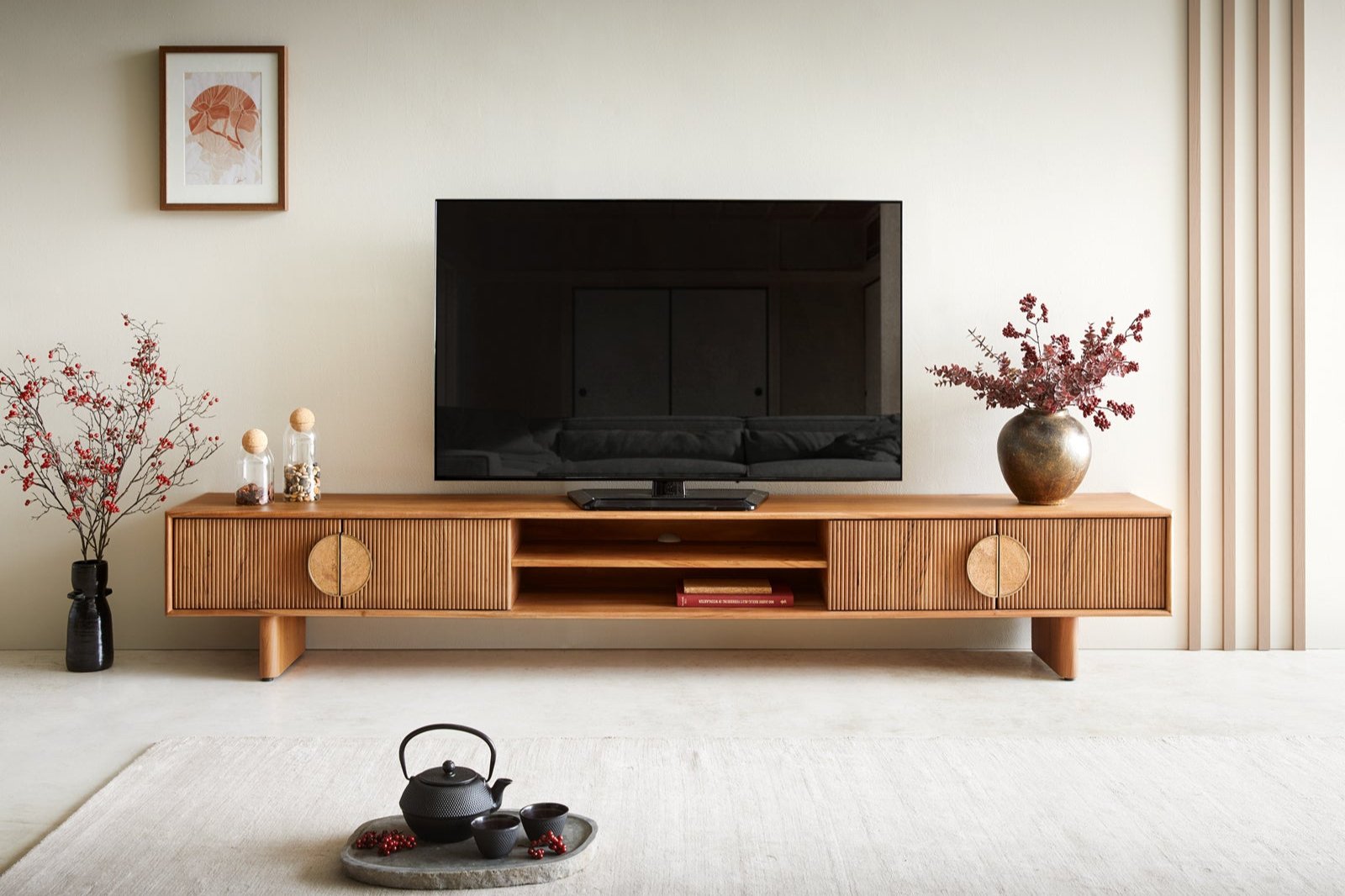 Pateri Solid Wood Large Tv Unit in Natural Finish
