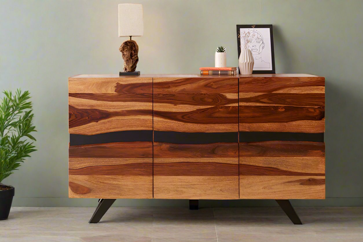 Ries Solid Wood Sideboard In Natural Finish For Living Room Furniture