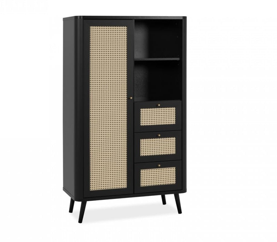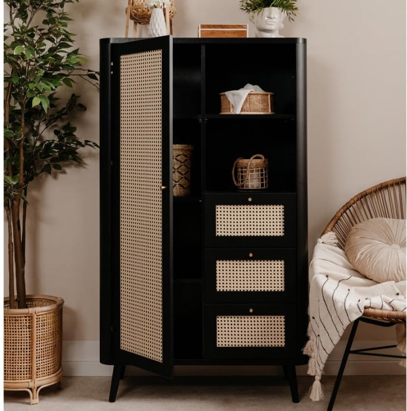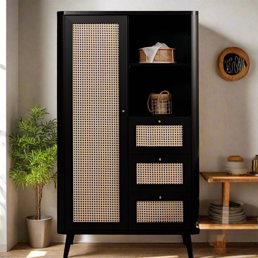 Roman Solid wood Caning Designed Wardrobe In Black Finish