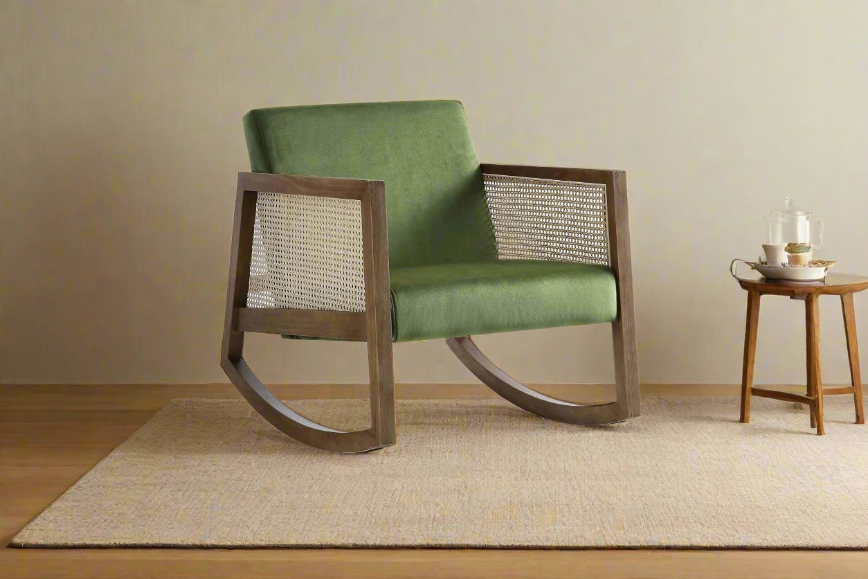Roman Wooden Rattan Arm Chair Teak Wood Armchair for Living Room Bedroom (Dark Walnut) Mid-Century Modern Velvet Accent Chair